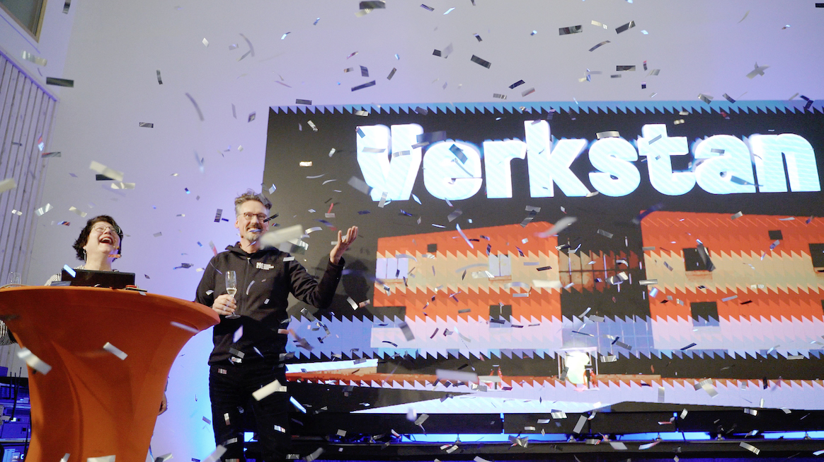 | 27 februari 2020 invigdes Nybygget och fick namnet Verkstan. På bild ser ni konferencier Susann Jonsson och vår vd Thomas Fägerman i konfettiregn. |